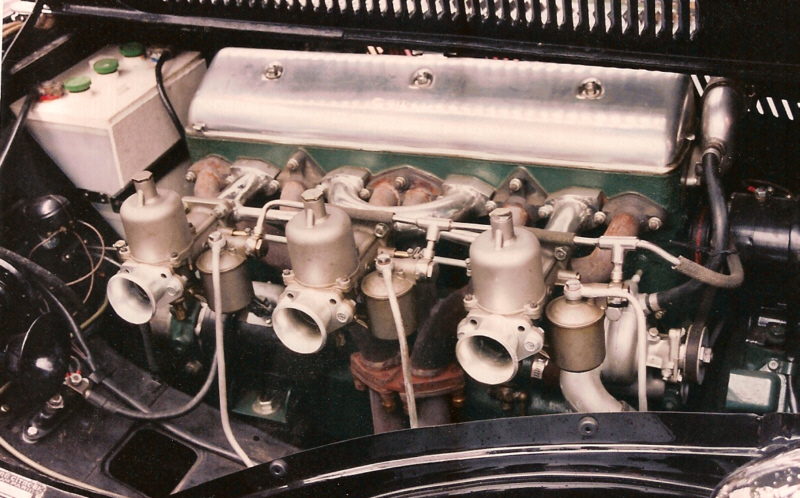 Son travail consiste a revoir l’admission des gaz : passages d’admission de la culasse élargis , rampe d’alimentation avec 3 carburateurs S.U. préparée par le mécanicien en chef de la concession Jaguar de Mr PEIGNAUX qui était à ce moment le référent lyonnais pour la préparation des moteurs. |
